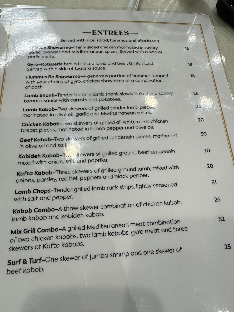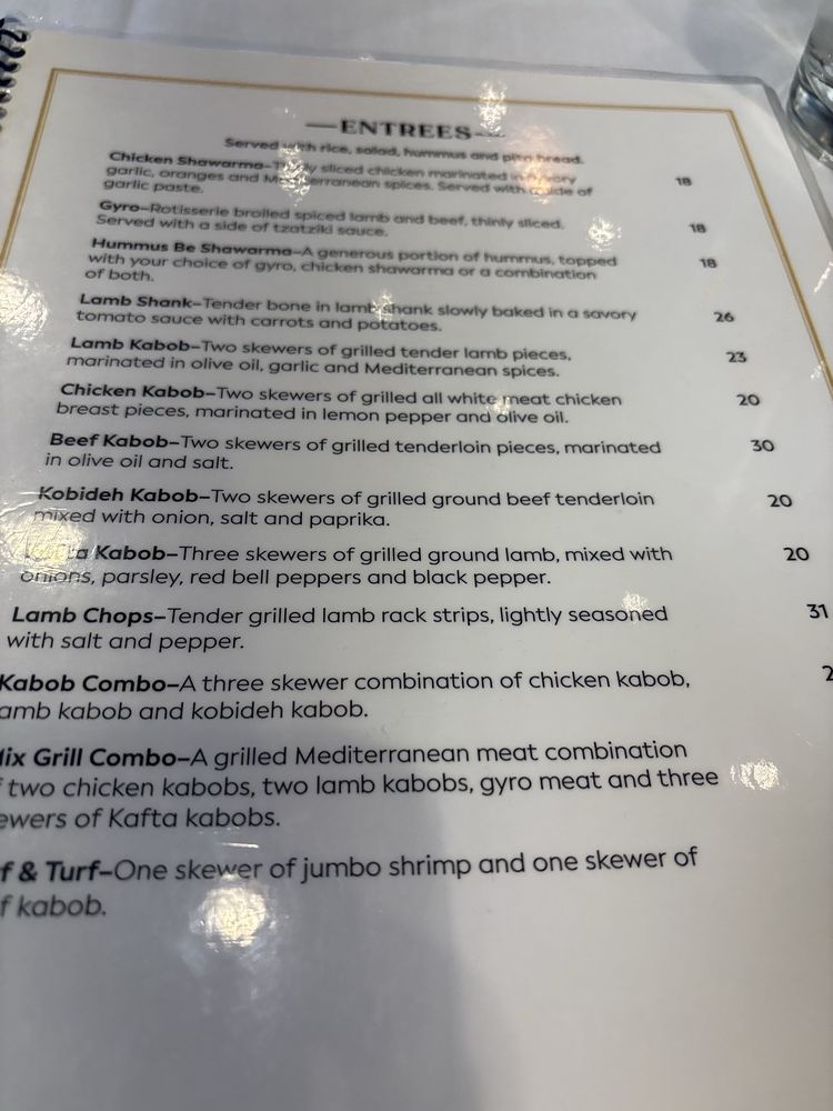 A generous portion of hummus, topped with your choice of gyro, chicken shawarma, or a combination of both. Rice included upon request
