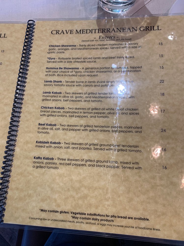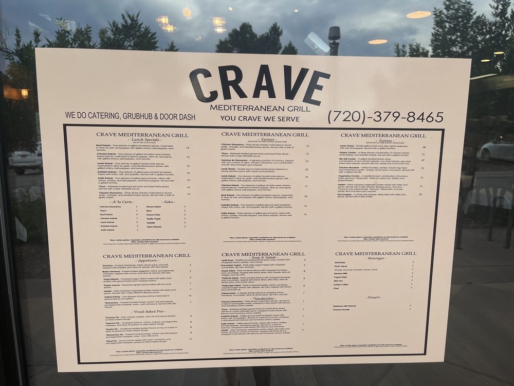 Crave Mediterranean Grill in Glendale, CO offers an authentic Mediterranean dining experience with a diverse menu. From flavorful appetizers like Hummus and Fried Kibbeh to Fresh Baked Pies such as Cheese Pie and Zaatar Pie, each dish is carefully crafted with traditional ingredients. Their Lentil Soup and Fattoush Salad are must-tries for a light yet satisfying meal. Customers rave about the Chicken Shawarma, Shrimp Kabob, and Lamb Kabob, praising the delicious flavors and generous portions. The restaurant's ambiance is welcoming, making it a great spot for casual dining or special occasions. With options for vegans and vegetarians, along with accommodating services like delivery and catering, Crave Mediterranean Grill stands out as a top choice for Middle Eastern cuisine enthusiasts.